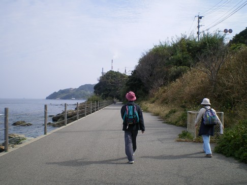 今日は、かねてより友人のAさん御夫婦と、臼杵~佐賀関幸崎のルートを御一緒しようと計画していました。今回は、佐賀関の幸崎をスタートし、臼杵市をゴールとする以前と逆周りのルート。ゴールの臼杵市は、竹宵のお祭りの最終日。竹の明かりで美しく彩られた町並みがゴールを迎えてくれます。これを楽しみに、頑張って一日ウォーキング三昧です。今回は、30キロ越えのルートですので、妻と娘はゴールで会うことにしました。午前9時16分に日豊本線幸崎をスタート。臨港線の整備されたウォーキングルートを歩きます。☆本神崎湊付近 道沿いのコスモスが綺麗です。途中、住民の方の生活道路でもありますので、散歩中や、農作業中などいろんな方に出会います。さがのせき道の駅で1回目の休憩。このルート沿いには、コンビニがほとんどありませんので、トイレ休憩場所は押さえが必要です。☆さがの関 道の駅心地よい海沿いの道が続きます。大志生木の町を過ぎて、小志生木の海岸を抜け、ここから、歩道がない国道沿いを歩くので少し危険です。この間の、歩道整備が進むといいですね。辛幸から再び臨港線跡のウォーキングルートが整備されています気持ちよく、海岸沿いのルートを歩きました。景色のいいベンチで2回目の休憩です。この間に、Aさん御夫婦と会話が弾みます。一番上の写真の気持ちのいい海岸沿いの道を歩くと、日鉱佐賀関の大きな煙突が見えてきます。途中で階段を登り、海沿いの道と分かれて、再び国道に戻ります。フェリー乗り場で3回目の休憩です。☆佐賀関の中心街へ 金山付近金山のトンネルを抜けると別府湾とはお別れ、ゆるやかな坂を登って、豊後水道に向かって歩きます。秋ノ江のトンネルを抜けると、ほどなくして、美しい浜が見えてきます。白木浜の海岸です。ここでちょうどお昼となりましたので、海岸を見ながら約30分の昼食としました。☆白木浜 関あじ関さば館 こちらもルート沿いの貴重な休憩場所です。ここからが、このルートは海沿いの道がずっと続く正念場となります。潮騒と釣り人の姿を眺めながら、ひたすら歩きます。今日は、休日とあって普段は少ない交通量も少し大目です。歩道がない箇所も多いので、気をつけて歩きます。室生から田ノ浦にいたる間に、ベンチのある小さな公園で休憩。似たような海岸と部落をいくつか過ぎると、遠くに一尺屋の町並みが見えてきました。ここでは、映画「22歳の別れ」のロケ場所ともなった場所のようです。御夫婦とも映画のエキストラ等で出演した話などに花が咲きました。☆遠く一尺屋の町並みが見える一気に一尺屋上浦まで着くと、JAの銀行前でしばらく休憩しました。ここからしばらくは、ゆるやかな坂を越えて、下浦へと続きます。いよいよ臼杵との境となる小網代を通過します。☆小網代(こあじろ)を通過☆いよいよ臼杵市へ 14時32分いよいよ、14時32分に臼杵市にはいりました。ほぼ18キロ地点を通過というところです。臼杵市にはいったところでしばし休憩。ただし、この近くには何もなくて、道路の端で休憩になります。坂を頑張って登り、佐志生の中心街を過ぎます。日曜日の午後は、ひっそりとしています。ちょっと足にもだるさがやってきますが、まだ大丈夫です。ひたすら道が続きますが、ようやく下ノ江に近づいてきました。☆海岸の美しい向こうに、遠くに豊洋中学が見えるしばらくトイレがなかったので、豊洋中学はとても貴重な場所です。Aさんが、校庭の近くには必ずトイレはある筈だと、探すとちゃんとありました。ここで、しばらく休憩です。さて、いよいよ下ノ江の造船所の姿が見えてきました。造船所を横に見ながら、臼杵少年の家への急な坂を登ると、美しい景色が広がります。☆山道から津久見島を望む 中津浦付近ここで、いつもならこのまま山道を進むんですが、日没も近いですし、暗い山道より海岸線の民家の多い道を行くことにしました。ゆっくりと、みかん畑に囲まれた道を、海岸への道をおります。途中は、なぜか懐かしい、映画のロケ地にふさわしいような、気持ちのいい中津浦の風景に見とれました。Aさんの奥さんが、登りよりも下りのほうがキツイねぇと。確かに、下りのほうが足への負担が大きく、気をつける場所ですね。☆みかん畑と海岸が美しい 中津浦付近海岸に出たところで腰掛けて、しばし休憩。最後のひとふんばり、もう、臼杵の市街地が見えてきました。ここから、中津浦と大浜のふたつの港を横に見ながら、私には、少し股関節の鈍痛が始まりました。足は、マメはないようでまだ大丈夫です。A氏はいたって元気、奥さんは膝の裏が少し痛むようです。26キロを過ぎて、あと少しですが、ここからがとても長く感じます。海洋高校の坂を避けて、半島をぐるりと回るコースを選んだのですが、ここも結構長く、ひろい道路に出て海辺郵便局を横に見ながら、ずっと変化のないまっすぐな一本道が続くので、市街地が遠く感じます。後から