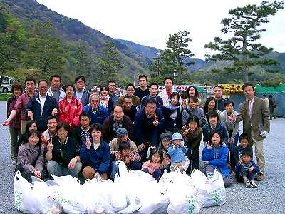 今日は、恒例になりました空き缶拾いハイキング。春の新緑と秋の紅葉のシーズンに行います。 もう、10年目になります。 嵯峨店前に集合して、記念写真。 集合時間に遅れて、自転車を降りる暇もない人もいます。。(笑) JR嵯峨嵐山駅、嵯峨商店街を進み、嵯峨の竹林を見ながら、亀山公園へ。。 新緑がきれいですか? そして、亀山公園を通り、嵐山一体を掃除して、 中ノ島公園に到着です。 そこから、お食事会に行きます。嵐山の有名料理旅館、、「花筏(はないかだ)」金屏風のあるお部屋で宴会です。 お料理は、こんな感じ。。 ふたを開けると、 美味しそうでしょ?わいわい、わいわい、、楽しく食べました。 幹事の田主君、、感謝してます、ありがとうございます。 天気予報では雨でしたが、 「大丈夫、この行事に雨はない!」と、 わたしは言い切ってました。 田主君の日ごろの行いで、 見事、雨は降りませんでした。(笑) お食事の後、嵐山を歩いていると、「社長、、お腹が減りました!」 食べた後なのに、こんなことを言う集団がいました。(苦笑) 「クレープを食べようか?」 と、クレープを食べました。 美味しかったです。。(笑)↓↓↓↓ クリック(笑) 今日の日記は、どうでした?わたしの写真にカーソルを合わすと・・・ 実は、社長ブログランキングをしてるんです。 今、33位でした。昨日より、落ちた。。(泣) わたしを応援してやろうという、心の優しいあなた、、下の緑のボタンをクリックして、ね♪一度押してもらうだけで、いいですから! ポチしていただきまして、ありがとーーう!! わたしって、、ホント、、ツイテル、ツイテル、ツイテル・・・・ツイテル。。 これも、あなたのおかげです。最後までお読みいただき、感謝しております。 今日も、あなたに全ての良き事が、雪崩の如く起きます!