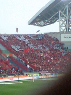 今日も埼スタは寒かったです。真冬のコートからボアだけはずして着ていってちょうど良かったです。 あと、開始前の鹿島の人文字? 多分「FU○K YOU REDS」(もうこの時点で信じられないくらい下品)と出したかったみたいなんですが、グダグダの失敗…みっともないにも程がありますこんなの、鹿島の選手が見て「あ~、うちのサポは応援してくれてる」って思うわけないのに、何しに来てるんでしょうこういうのって、サッカーの神様見てると思うんですよねぇ うちは、選手入場の時に ゴール裏に選手のために 高原・エジの2トップは相変わらず、2人の動きがかみ合わず不発でしたが、守備が頑張り、何とか0−0 後半開始からこの所の定番 高原→雄一郎様 開始4分、啓太からのパスをトゥーリオがオフサイドギリギリでうけ、ゴール前の雄ちゃんがきれいに決めて先制まさか、鹿から先制点が捕れるとは しかしっここからは、サンドバック状態クリアしてもクリアしても、セカンドボールは鹿島だからず~っとピンチ…一体、鹿は何本CKあったんだろう…今日の都築には神が降りてました そして、後半ロスタイム、雄ちゃんが鹿島・大岩のバックパスをかっさらって、曽ヶ端をかわして、ちょ~かっこいい2点目を決め、勝利をもぎ取りました ちょっとぼけてますが… 2−0で勝利ヒーローインタビューの雄一郎様 淡泊だった雄ちゃんが、今シーズンは「どうしちゃったの?」というくらいの豹変ぶり好調なときは、ケガに気を付けて、雄ちゃん次も頼みます~ 勝ったから、喜んではいますが、内容は決して良くありません次は「埼玉ダービー」 今日の結論「サッカー場にはサッカーの神様がいる」だから、ダービーも大宮にケチを付けるのではなく、レッズを支えるサポでいて欲しいです。
