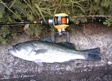 昨日夕方から22時過ぎまで寝てしまったせいで「こりゃ 寝れないなぁ(´・ω・`)」と思い夜中2時過ぎに 姫路まで釣りしに行こうと思いたって5時到着予定で ここを2時半に出発した高速すっ飛ばして 姫路到着 チョット雨だったけど約1年ぶりのホーム野池さてどんなモノかと 覗いてみたらなんか生命感がない( ̄□ ̄;)小一時間粘ってみたが ノーバイト6時くらいに散歩してたおっちゃんが声をかけてきて聞くと 水抜きをしたらしいとの情報があぁ いつの間に(ToT)この野池で 自己最高の49cmを揚げていただけに残念に思いつつも もう一つ上にある池は釣れてるらしいと 教えてくれたので 500m位しか離れてないけど釣り始めた頃に よく行っていたところだったので そちらに移動移動したら 先行者が一人(地元のチャリンコバサー)いてちょうど少年も来たところだったみたいで Uの字型した野池の頂点から オイラが時計回りその少年が反時計回りで 釣行開始少年は夏を意識した バズベイトなどトップ系でオイラは いつもの4インチグラブライトテキサスで探りを入れてみた反応の無いまま どん突きまでやってきてカバーのある付近に数投したところ↓のが釣れたメジャーテープを車に忘れてしまったのでとりあえず バッグに付けてた小さいメジャーで計ったところちょうど40くらいだった一年ぶりの40UP ロッドがピクシーだったので結構引いて面白かった(´∀`)でも 40ってこんなに小さかったっけ?と思ってしまった体高がイマイチだったせいだろうか?その後 手持ちの4インチグラブが無くなってしまったのでシャロークランクのちっこいの(Woodream-FatBugSSR)で20くらいのとノーネームクランクのフラットサイドで30くらいのがきた クランクで釣れると なんか嬉しい(´∀`)んで また2時間半の道のりを帰ってきて今メッチャ眠い(´・ω・`)