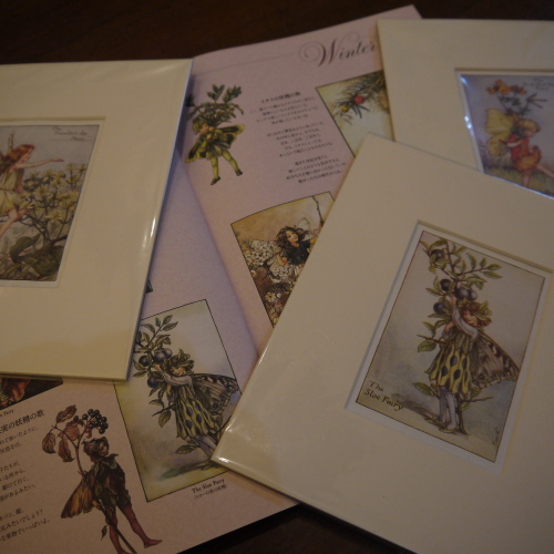 確定申告作らなきゃいけないのにしたくないから逃げて、レンタルDVDを借りに行った。4枚で1,000円。4枚借りて来て見始めたら、その内の1枚は以前借りて見たものだったという、相変わらずのあほさ加減で有る。TUTAYAでDVDを借りるとき、書籍コーナーでふと見ると可愛らしいピンクの表紙の雑誌が目に留まった。花と妖精の絵に見せられて思わず買ってしまった。家に帰って中を見ると、「うん?なんだか見覚えが・・・・。ここまで書くと、きっと読んでいらっしゃる方は、「きっと前に買った本、また買ったのね」と思われるだろう。伏線を張ったからね。いえいえ、確かに見覚えのある絵だけれど、本を再度買ったのではない。本の中に有る絵を買ったのである。小さい額に入った葉書サイズの3枚の複製ではあるが本の絵と同じなのである。ああ、そうだオックスフォードのメインストリートの絵画を売っている店でお土産用に6枚買った内の余り3枚が手元に残っていたのだ。作者はシシリー・メアリー・パーカーという人らしい。知らなかった。せっかくだからこの絵をどこかに飾ろう。そうだ!山の家に新しく作った小さな部屋にこの妖精たちを住まわせよう。オーダーしたシェードカーテンは白とブルーを基調にした葉っぱと蝶の絵柄だから、うまく釣り合うかもしれない。妖精はいつも夢を運んでくる。