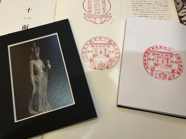 旅の目的はただ川村屋と松屋長春の一個270円の羽二重餅を買うというもの。ただし、当初の目的はそれであっても新幹線代2人往復、ホテル代金を思えば他にも楽しまなきゃ。学生時代井上靖の「星と祭り」を読んで以来会いたいとずっと思っていた湖北の渡岸寺の国宝十一面観音を見に行くことにする。羽二重餅のついでにしてはバチが当たろうと言うものであるが。行きの新幹線は名古屋を通り越して米原、乗り換えて北陸線ローカルの向月駅で下車した。辺りは雪で真っ白な世界。伊吹山も琵琶湖も寒々としていた。雪を踏み締めて歩くこと15分。小さな向源寺というお寺。「どちらからおいでで?こちらは初めて?」という問いに「来た記憶はないのですが、こちらの十一面観音の写真とスタンプを持っているんです」そう、先日、本棚から写真ブックとそこに押された寺のスタンプを発見したのである。うん?行ったことが有る?記憶にないけど。お堂の中の十一面観音に対面。説明の人曰く。「20年ほど前に東京の国立博物館に出展した事が有るんですよ。」あ、それかなもしやそこで買った大判写真ブックに参拝記念のスタンプが押されていたのか?いやいや、その井上靖監修の写真集はもっと古く学生時代から持っていたのだと思う。そして国立博物館でもお会いした記憶もないのである。お堂の前に置かれたスタンプを押してみる。渡願寺のスタンプ。織田信長とその妹お市の方の夫である浅井長政の戦いで渡岸寺が焼けた時、村人がお堂から助け出して土に埋めて守ったという観音様は今は向源寺というお寺のお堂に安置されている。古くなったスタンプはなかなか綺麗には押せなかった。右のスタンプが今回押して来たスタンプ。向源寺という字が追加されている。これで日本に7体有る国宝の十一面観音の5体にお会いしたことになる。