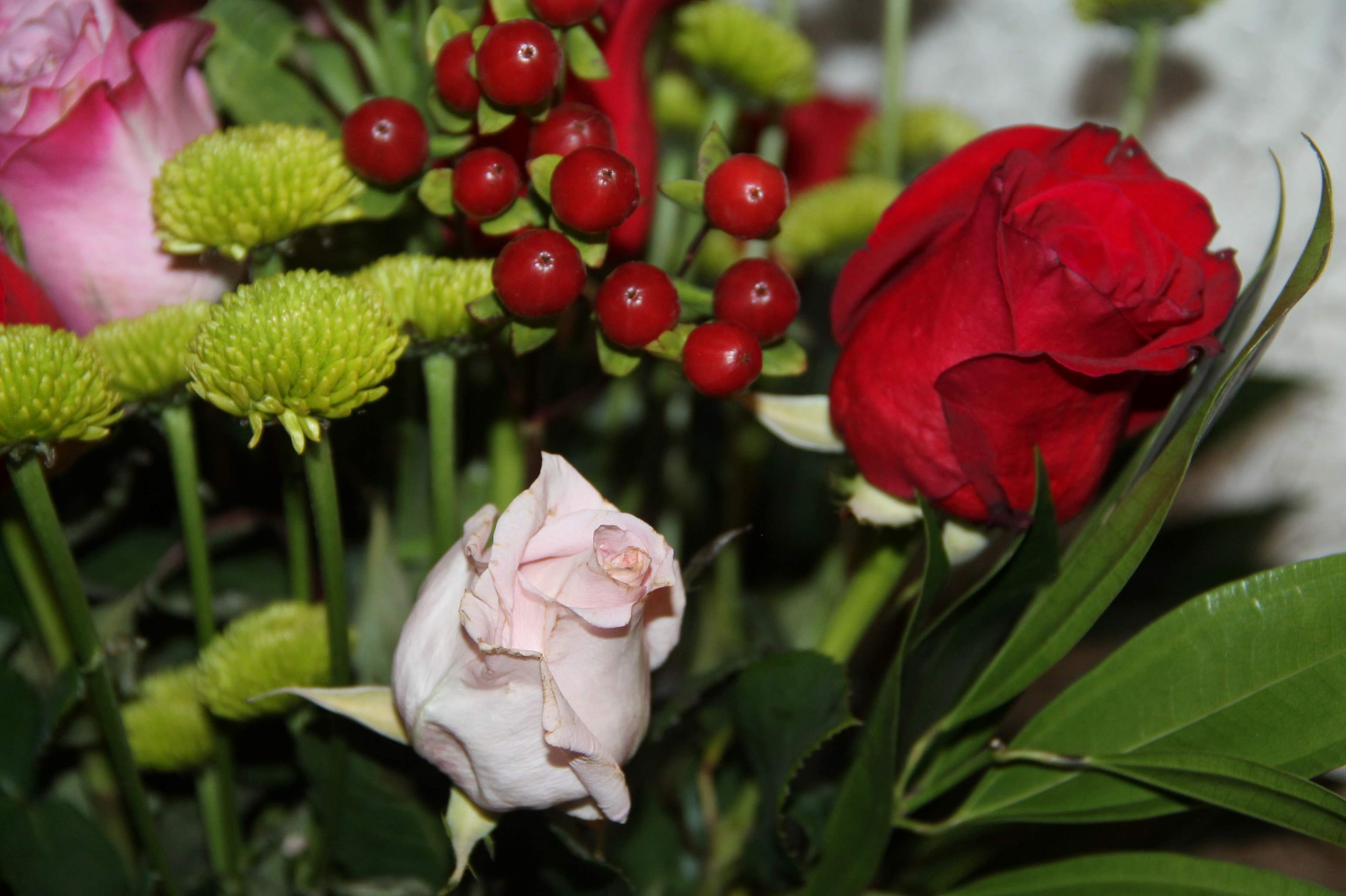 花束は綺麗に咲いている。