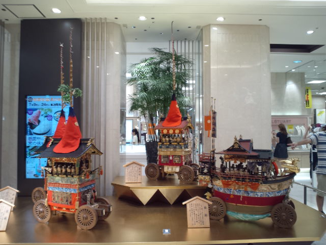 京都市内は祇園祭り一色で、デパートのロビーもこんな感じで