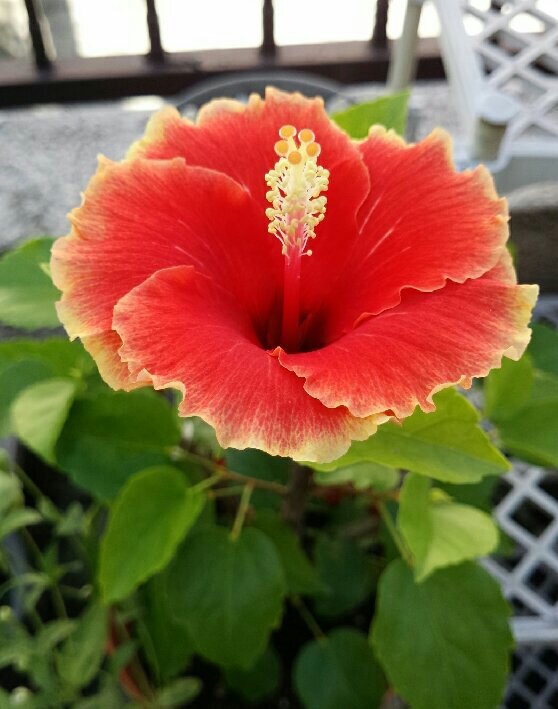今朝、やっと三本めのハイビスカスか咲いてるのをみたら、また庭にでちゃいました(笑)