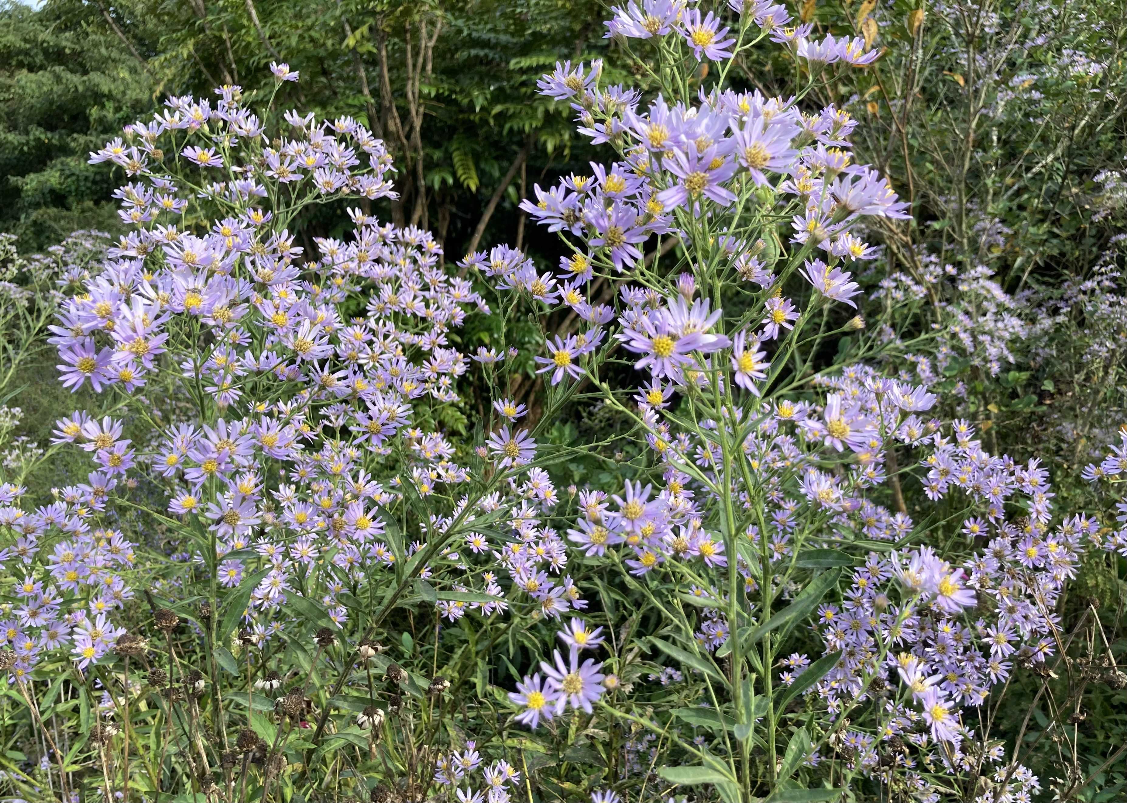 また満開の紫苑こんな調子で何十本も咲き誇っていますまさに私の庭は只今紫苑これ↓はクジャクアスター私は紫苑とかクジャクアスターのような小花が群がって咲く花が好き先日ある所で小泉孝太郎さんが実家は質素、何もない父親の小泉純一郎さんが頂いた九谷焼とか輪島塗を好きな人が持っていればいい、あの世には何も持って行けないのだからと人に上げてしまうからと語っていらしゃるのを読んで私、純一郎さんに少し似てると思いました私、物が大好きなんですが・・・自分が使わないとなるとすぐ処分したくなりますKが使っていた工具類はKの病状が進み使えなくなってからは機会あるごとに「要る?」「使う?」と聞いてはいろんな方にもらってもらいました耕運機、草刈機、削岩機、電動ドリル、コードリール、電動はしごその他もろもろの工具処分してから後悔したことは殆どありませんがたまには後悔することもEDさんが使っている草刈機を見ると(もっと上等だった)草刈機をとっておけばよかったと思ったし先日木の伐採の折NMさんに(手持ちのコードリールでは足りないので―何せ私の庭は広く、木があった場所は庭の奥だったから)延長コードはありませんかといわれたとき我が家にあったコードリールはEDさんの持っている物よりもっと大型だったのに・・・と思いました私が使わなくても手伝ってくれる人が使うこともあるからとっておいてよかったのかも自分はあまり使わないからあげた剪定の鋸はまた買いたい気になっています