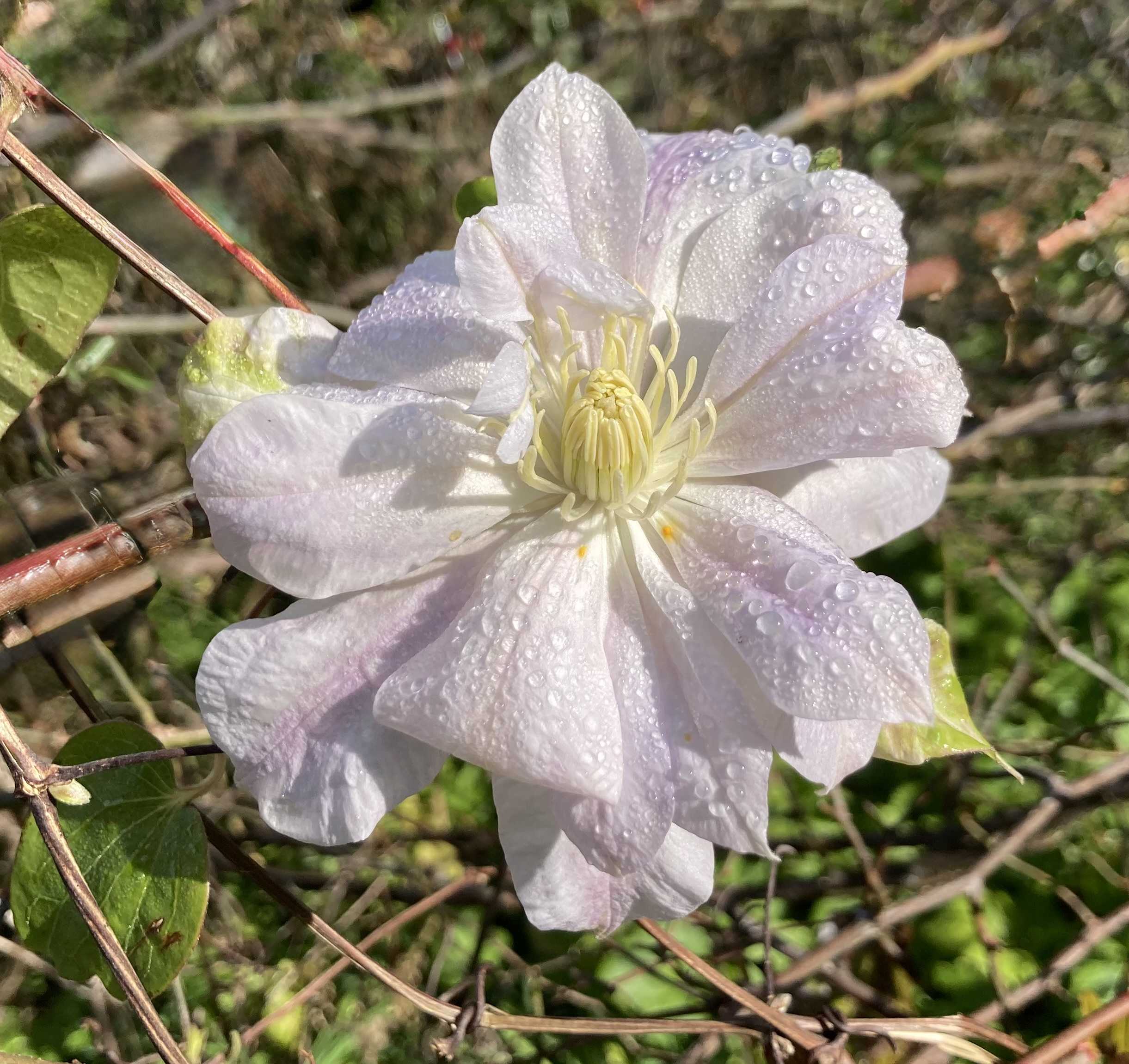 ↓ダリア 三種ダリアは前にも書いたように寒さに強くないけれどかといって暑さにも強い方ではないから私が植えた好きな花型(ポンポンダリアは好きではない)のダリア10種ほどの内今年の夏を越せたのはこの3種だけ3種だけでも残ってうれしい10月13日、次女と二人で最終的な片付けをしている時の事お隣の(かなりの)老婦人がカートを押しながら買い物から帰ってこられましたいったん家に入ってまた戻ってきて次女を呼び何やら戻ってきた次女に何だって?と問うとうち(燐家)にはみ出している(次女宅の裏の角に生えている)木の枝を切ってもいいでしょうか、とのことあれは家で植えた木ではない、前の方が植えた木なんですどうぞ切ってくださいと答えた、とそこで私は隣の婦人の言葉をついでだからあの木も切って下さいと言うことだよと意訳いつの間にか1mぐらいに伸び 確かに隣りに少し越境しているそのハクチョウゲをすぐさまつんつるてんに私は物言いが単刀直入でも婦人の言葉から婦人の本意をくみ取ることができたのは年の功でしょうか次女はブドウの後にまた何か植えたいようで・・・私もいろいろ考えてみたのですが・・・一つ思いついたのはクレマチスアーマンディクレマチスの中でもすこぶる丈夫で常緑、花期が長め、何より花がすこぶるいい匂いどうでしょうね