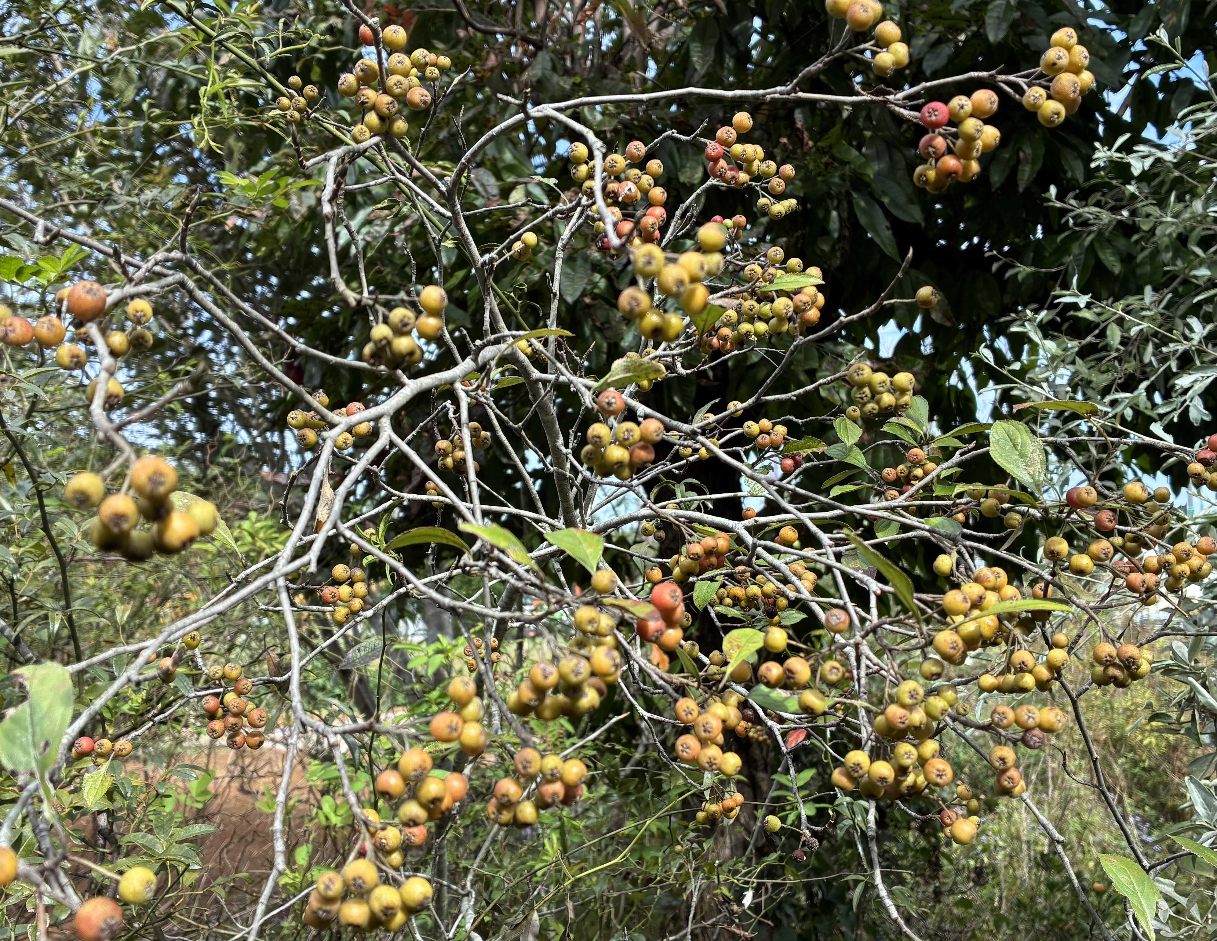 ↓カマツカの実今年は例年になく実付がいいもう少し経って真っ赤になるのが楽しみ先日スズメバチの巣が近くあるからその巣を退治するまでは、と中断になった木の伐採作業が今日行われました今日はNMさん本人と男女一人ずつの助っ人の3人で見えました作業が始まって間もなくまた他にも中小のスズメバチの巣があると言ってこられ愕然また中断と思いましたが噴霧薬を買いに行って対処してもらいホッ(薬は見積もり料金に+)と思いきや今度は延長コードの長さが足りない、と家中の探しまわり延長コード2本差し出したがそれでも足りないと(専門家が使うコードリールはあったけれど誰かにあげた私は自分が使わないものはさっさと人に上げる性分)何やかやあったけれど12時頃には作業終了今日切ったのは左のロシアンオリーブと右のスズランの木ビフォアーアフター(大きな木は隣の林)気疲れしたので急に思い立って創作フレンチの店に1人ランチに選んだメニューは軽いおつまみは鴨サラダのシャインマスカットとカッテージチーズと生ハムの取り合わせが👏メインディッシュはサーモンのポワレ松の実とアーモンドを散らしたソースが極く美味これで2800円は安いですよね←地の利大満足のランチでしたが1人では少し詫びしい向かいの席で2組の夫婦、孫4人で囲んで老婦人の誕生会が開かれていただけになおランチの後は明日の温故堂行に備えゆっくり