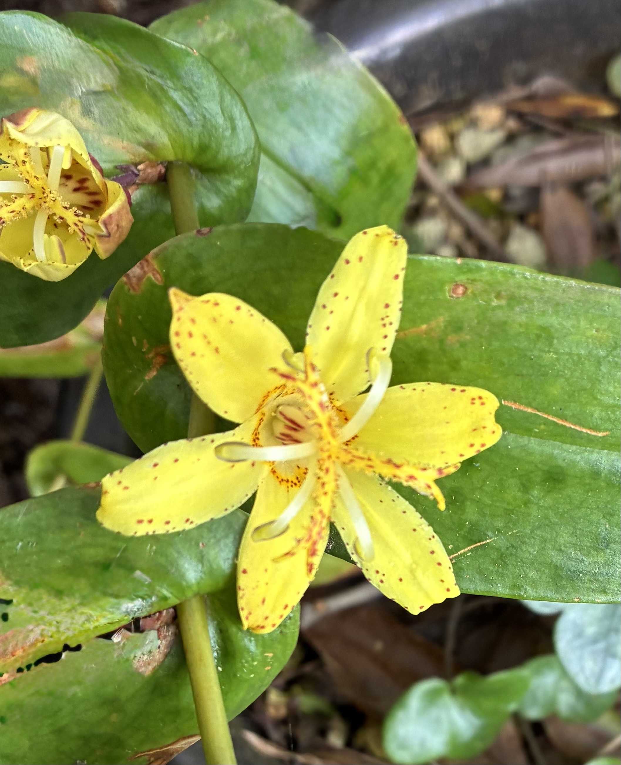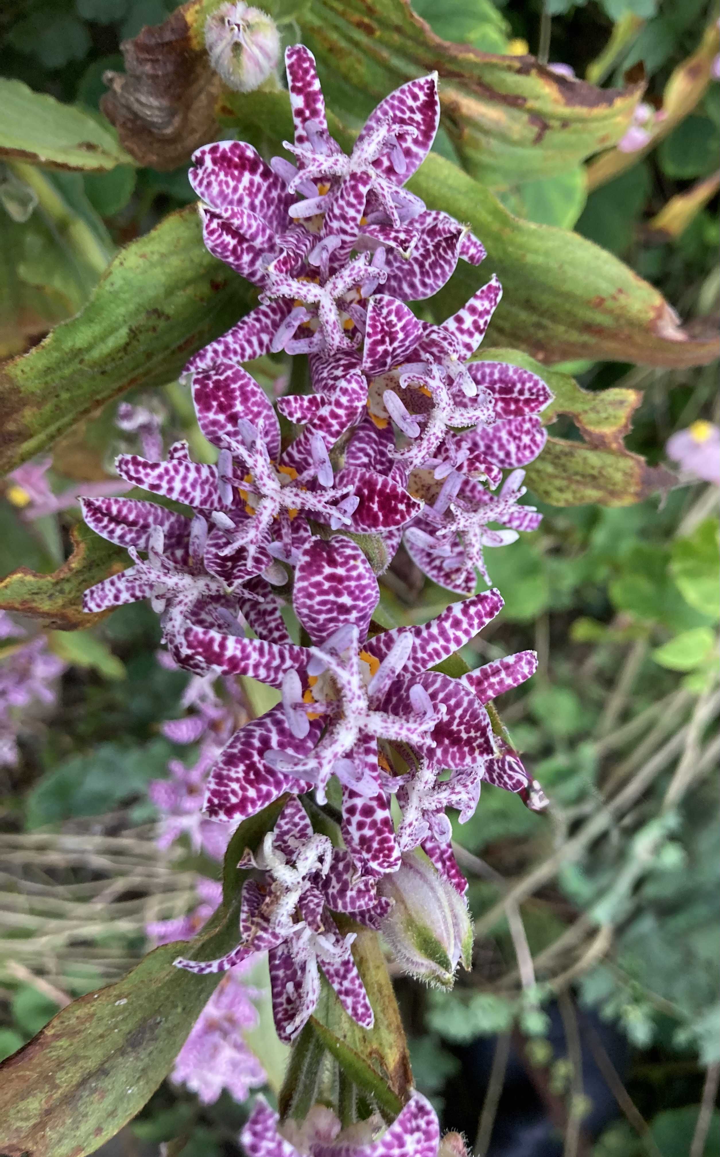 ↓キイジョウロウホトトギス(漢字で書くと紀伊上臈杜鵑)後ろに写っている雪割草や雪の下と一緒に家の裏においてあるので撮り時を外してしまいました妹がFBでキゥィ―、アケビ、ナニワイバラ、ノウゼンカズラを植えて後悔していると書いていました私にも植えたことを後悔する植物が沢山あります今までに別れる、追い出すと決めた植物は多分100種じゃきかないと思いますでも追い出すと決めてもなかなか出ていかないものもリッピア、八重咲ドクダミ、シラユキゲシ、グレゴマ、ヒルザキツキミソウ、ゲンノショウコ、豆柿などは出て行ってくれませんねえ植物は土地に合うとなると本当に爆発的にそだちますよねえ妹が挙げている4種ではノウゼンカズラはここでは寒さ故育ちませんでしたアケビは周りの自然にたくさん生えていますから庭には植えていませんが誰かの落とし物が沢山芽生えてくるので片端から抜いていますキウィーはある年台風のため棚が壊れたのをきっかけに終わりにすると決めたけどその後長い間土に残った根から芽が吹きだし大変手こずりましたナニワイバラの花はとても魅力的だけど花期がとても短く一期咲き、棘がとても鋭いことが花の魅力を上回りお別れこれは割に簡単に出て行ってくれました(今日は一回書いたものが消えたのでUPが遅くなりました)