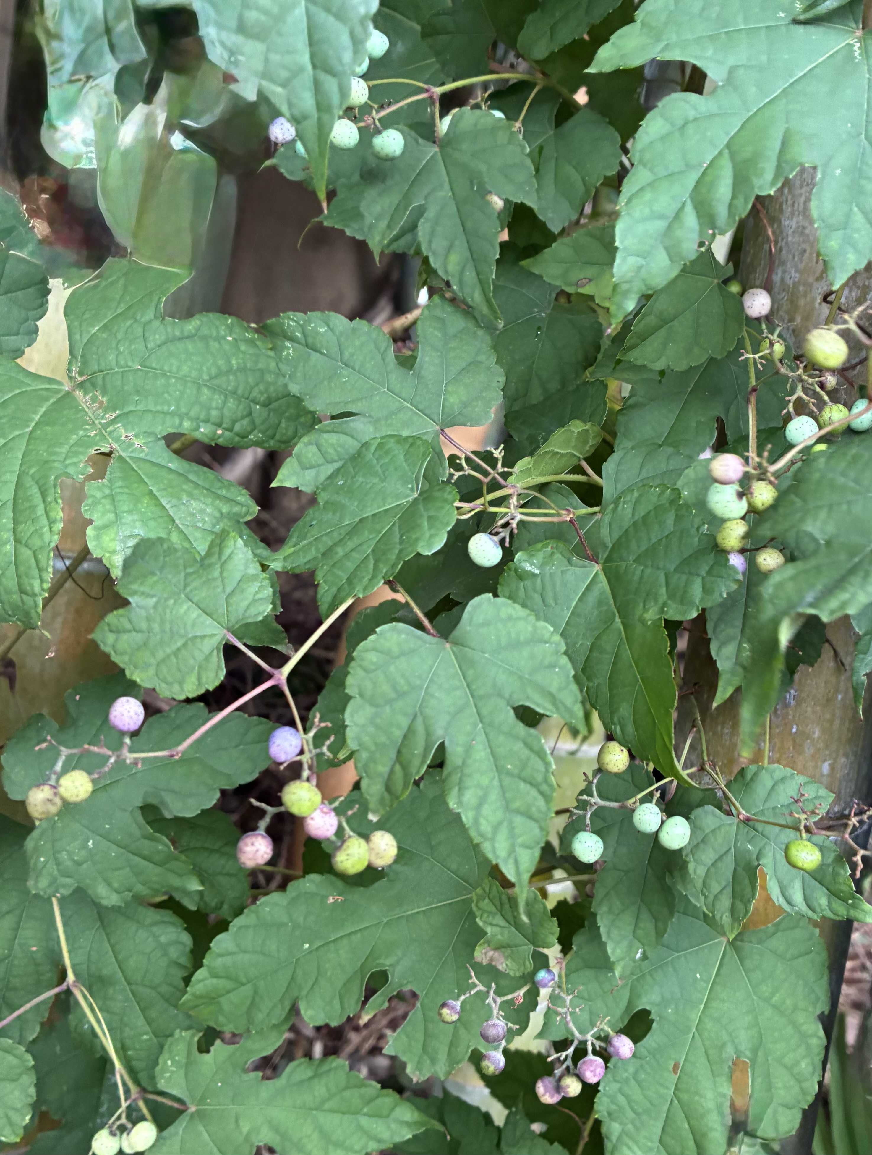 ↓野ブドウ野ブドウは間違って山ブドウと言われることも多いですが・・・山ブドウと野ブドウの大きな違いは野ブドウの実は白、黄色、緑、紫など色とりどりで綺麗だけど食べれないというか毒があり山ブドウの実は黒紫色で食べられること今日は胆石で入院している三女を見舞ってきました最寄り駅で単身勤務地から緊急帰省中のO(三女―夫)さんに拾ってもらい病院へ経過を聞くと火曜日に腹痛があったけれどその時はロキソニンで納まり金曜日、入浴中に再び腹痛がしてきてロキソニンを2回飲んだけれど治まらず土曜日午前2時に棟続きのご両親に助けを求め義父の運転で病院に来たそう検査の結果は胆石で胆石の大きさが少し大きかったから胆嚢を摘出することになり昨日午後全身麻酔で腹腔手術(穴3か所)を受けたそうです三女は抗生剤などの点滴をしていたものの顔色もよく思いのほか元気炎症もなく経過が順調なので月曜日に退院できるそうですOさんは単身赴任ですから三女一家は日頃から別宅のご両親に大変お世話になっていますしかし私は三女宅を訪れてもいつもはご挨拶に伺いません表で出会えばもちろんご挨拶はしますけれどしかし・・・今回は格別のお世話になりご負担をおかけしています(病院に運んでもらったり、入院中の家族の食事とか洗濯とか)だからご挨拶したいと思いましたが今日はご両親はご用事でお留守とかなので病院でご両親への手紙をOさんに託けました次の機会には必ずご挨拶することにして今日は病院から直帰でした