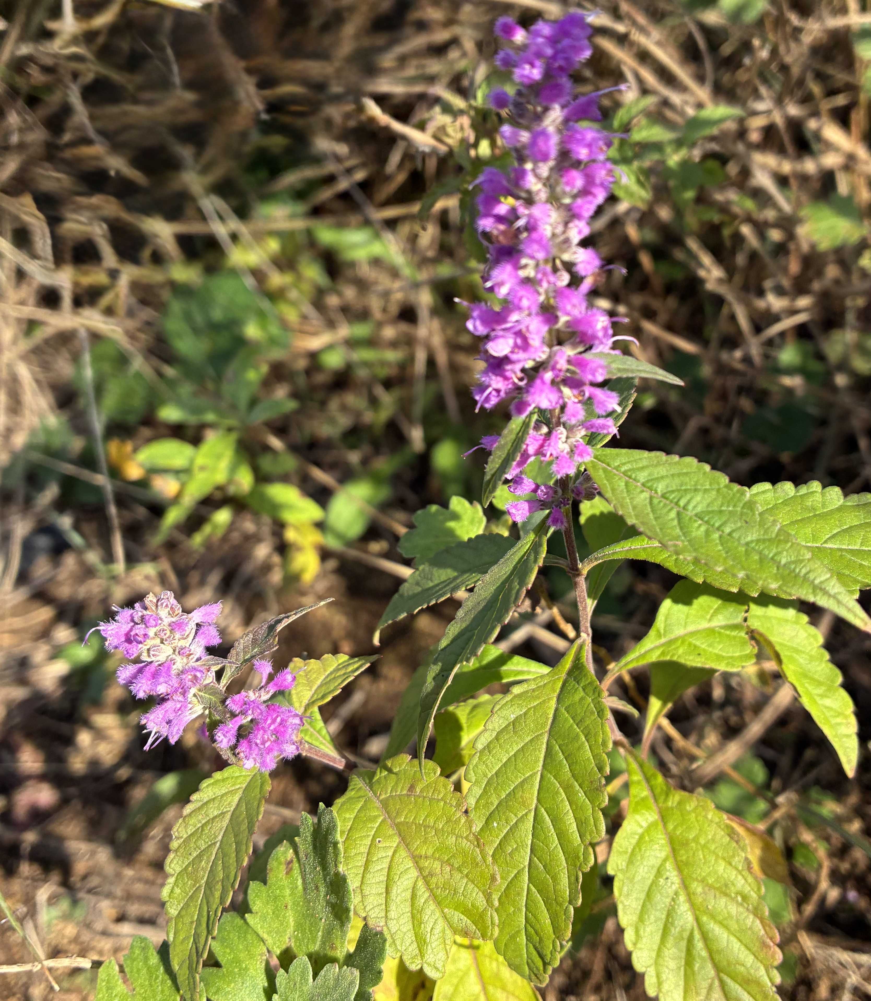 ↓ミントバーム (和名ーナギナタコウジュ、漢字で書く薙刀香薷)和名の薙刀香薷という名前の由来は・・・以下引用「ナギナタコウジュの名前の由来は、秋に枝先に咲く花穂が、薙刀(なぎなた)のように片面だけに付く様子と、芳香がシソとハッカを合わせたような香気があり、中国の香薷(こうじゅ)という薬草に似ている」から確かに花つきが片面というか側面に花がついていない所が一筋ありますね。畑をかしているEDさんはスイカや甜瓜やゴーヤの後にブロッコリー、春菊、ターサイ、大根数種、小松菜、何かの菜っ葉を育成中大根と小松菜と菜っ葉類はものすごい数小松菜などはさばききれないのではないかと心配になるほどの数(EDさんは育てた野菜は知人、友人に配るだけで売りはしない)小松菜は栄養が豊富だから食べた方がいい野菜だけど私は小松菜はあまり食べない理由は小さい時食べなかったからか何か筋っぽく固いから(寒さにあたって柔らかくなったら食べます)EDさんに「ほうれん草は蒔かないの?」とたずねると種がないからという返事種を買ってきたら蒔いてくれるそうなので早速ダイソーで3袋買ってきました(ダイソーの種は二袋100円、一袋60円です)雨が降ったら蒔くそうですEDさん、これからキャベツとエンドウも植えるそうで来年春が楽しみ