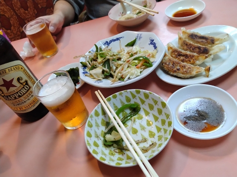 ところが、先般、たまたまグーグルマップで見つけた小竹向原駅界隈の良き酒場を知ってから俄然リサーチ熱が高まりました。今回は池袋駅から2駅目の千川駅を訪ねることにしました。手始めに駅からすぐ近い、一軒にお邪魔することにします。目の前にはかつてお邪魔したことのある張りぼてのような喫茶店が見えます。風景は早くも住宅街のそれに変貌しています。折悪しく雨が降り出しました。「中華 八千代」はそんな退屈な風景に埋もれそうでいながら、しっかりと存在を放っていました。こういう場所の料理店っていうのは近隣の方との共存共栄が肝になりそうですが、戸を開け放っての商売をしていられるところからも上手に関係を維持しておられるようです。表通りからは完全に死角となっているから来られるお客さんも近所の方以外はせいぜいがぼくのような物好き位なのかもしれません。品書きを眺めると酒の肴になりそうな一品料理が定番ばかりながら揃っています。餃子とピーマン炒め。にしては酒の種類はビールのみなのはちょっと残念。まああんまり長居されても困りますから。お通しで出されたのはわかめでした。これが本当に単なるわかめだけで、醤油と酢を垂らして食べたのです。でもこれが案外美味しいのだ。自分ちでこれやっても少しも美味しいとは思えないと思うんだけどねえ。不思議なものです。やがて帰宅途中のご近所さんらしき背広姿の方が来店されました。味噌ラーメンを頼んでおられます。ところで、ぼくは初めての店に入ると必要以上にキョロキョロしているのですが、この悪癖のお陰で偶然にも目にしたレシピを入手でき、このレシピはすぐに実践されたので、挙動不審な行動にも意味があるのだと主張するのです。