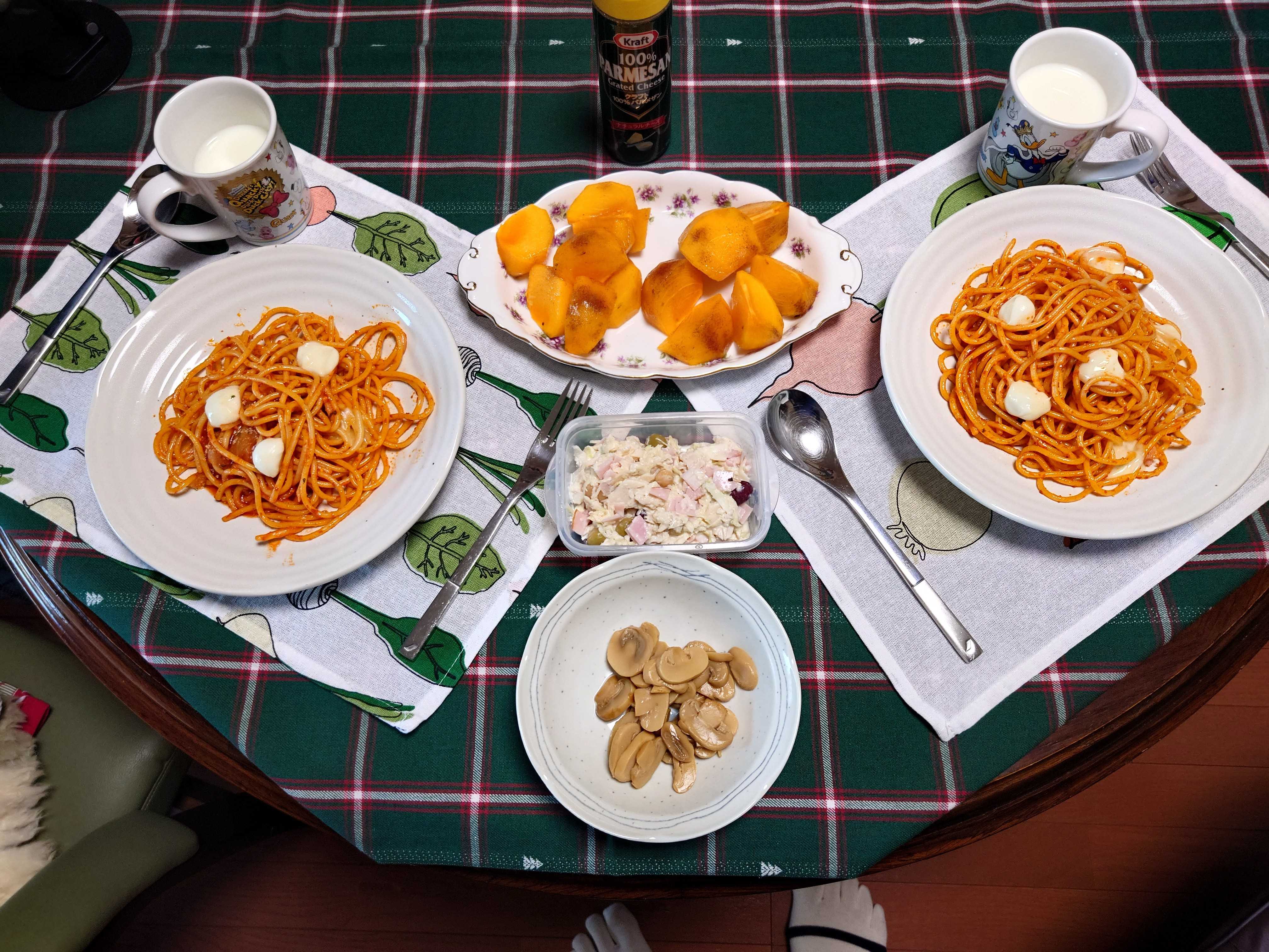 今朝の朝食は、ナポリタン