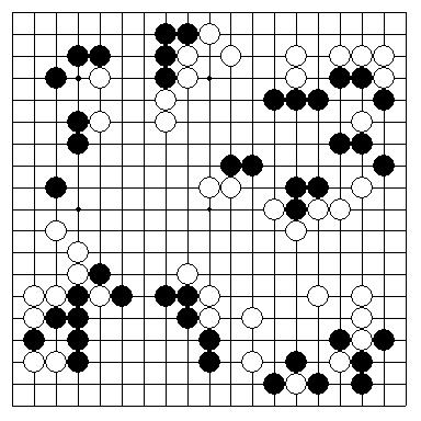 これならば、黒は手入れを拒否して最後の半劫が勝負になる。結局劫材が多い黒が半劫つぎとなって黒一目勝ちとなるのである。言われて見ればそれほど難しいことではないが、普段こんな所を平然と逃しているような気がする。こういう所に神経をすり減らすプロの世界とは恐ろしいものである。
