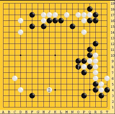 黒 1 では、左上や下辺の大場に先行すれば、はっきりリードしていた。