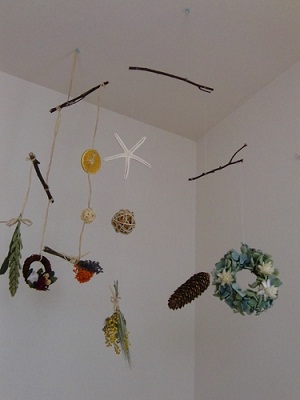 ~~~~~~~~~~~~~~~~~~~~~~~~~~~~~~~~~~~今後のわたしカフェ予定 7/12(木) ドライフラワーを使ったモビール作り☆7/19(木) コーラス 7/21(土) 寺子屋造形クラブ単発クラス 陶芸体験 ~子供の身体の一部を使って、成長記録にも!?保護者の方のご参加もOK~9/22(土・祝) 貸切バスにてワイナリーめぐりそれぞれお申込はこちらまで。 その他、パーソナルカウンセリング、イヤーアートセラピー、リンパマッサージなどのご予約受付中!もちろん、子連れOKです☆~~~~~~~~~~~~~~~~~~~~~~~~~~~こんにちは。朝から、真夏の日差しですね。風はまだ爽やかなものの、梅雨明けを思わせるようなお天気です。 昨日予定してたドライフラワーを使ったモビール作り☆は、こちらの事情で、お申込頂いてた方々の了承を頂き、7/12(木)に変更になりました。天井で涼しげに揺れるモビールをナチュラルテイストで仕上げます。我が家は、父母へのプレゼント用に作りましょうかね~お申込はこちらまで。 前からわたしカフェに来てくださってて、今年出産された方が、久しぶりに、赤ちゃんを連れて、ご参加予定です。新米ママさんになった彼女に会うのがとーっても楽しみ☆