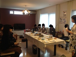 ~~~~~~~~~~~~~~~~~~~~~~~~~~~~~~~~~~~今後のわたしカフェ予定 7/7(土) 寺子屋造形クラブ7/9(月) ドライフラワーを使ったモビール作り☆7/19(木) コーラス (予定)7/21(土) 寺子屋造形クラブ単発クラス 陶芸体験 ~子供の身体の一部を使って、成長記録にも!?保護者の方のご参加もOK~それぞれお申込はこちらまで。 その他、パーソナルカウンセリング、イヤーアートセラピー、リンパマッサージなどのご予約受付中!もちろん、子連れOKです☆~~~~~~~~~~~~~~~~~~~~~~~~~~~こんばんは。学校や保育園では子供達のプールも始まり、毎朝、どの子がプールの日だったっけ!?と、少ない私の頭のメモリを食われています!? 今日は待ちに待ったハーブティー講座午前中雨の予報だったのに、予報に反して爽やかなお天気となりました大好きな玲子先生に来て頂き、今日は、急なお申込やわたしカフェ初参加の方も含めて、11組での講座。 実習やテイスティングも含めて、じっくりとハーブのお話をお聞きすることができました 落ち着いた雰囲気の中で、まずは基本的なお話から。 皆さん、メモを取ったり、質問したりと、本当勉強熱心! その後は、10種類のハーブの効用を一つずつご説明頂き、一つずつテイスティング。私は、普段は、いろんなハーブをミックスして飲んでるので、改めて、一つずつ味わうことで、それぞれ特有の味と香りを確認することができました。 ハーブティー用のティーポットも10種類用意いただき、最後は、各自それぞれでお好みのブレンドを試してみました☆ 実は、今週体調がはっきりしなかった私。家族にも心配をかけた日が続いたのですが、ハーバルライフに少しだけ足を突っ込んでる我が家では、子供達から、「ママ、まだ具合悪い?ハーブティー飲んだら?オレが淹れてあげようか?」(実際には、まだ淹れられないのですが・・・)というような言葉が飛び出して、私も嬉しい限り。 にしても、毎朝、ハーブティーを飲み始めてからもうすぐ半年。誰も体調を崩すことがなく来てたのに、なぜよりによって私が!?と、内心ショックだったのですが、今日、先生のお話を聞いて、少し納得の部分が・・・実は、毎朝飲む私が飲んでるハーブティーは、子供達と主人に淹れたものの二番煎じ。一度目淹れたものと変わらないくらい味も色も出るので、それで十分!と思ってたのですが、効用はがくんと落ちるようです。なるほど、それで、家族は元気なのに、私がおかしくなったのか!?と妙に納得してしまいました(笑 今回、ハーブの話は初めて!!という初心者の方もいらっしゃいましたが、今日の数時間の先生の分かりやすいお話で、すでにハーブの凄さに魅せられた模様・・・ きっと彼女は、今日お土産でいただいた2種類のブレンドハーブティーと、ティーポットで、おうちでも楽しんでくれてることでしょう~ 今度は一緒に先生のお宅にお邪魔させて頂きましょうね 下記は、先日の先生のお宅でのお料理レッスンのときの一こま。 写真のほかにも、私が毎回レパートリーに加えさせて頂いているディップもあり、いつも、夢のような時間を堪能させて頂いています☆ さて、来月は、予告通り、ドライフラワーを使ったモビール作りを企画しています。天井から吊るすタイプで、見た目が本当キュートなモビールで、いつものお部屋にぐんと表情が出るかも!?これから、夏休みでお子さんと一緒に過ごす時間が増えるこの時期、ちょっとしたアイテムで、楽しい室内の工夫をしてみませんか? また詳細は近々ご案内いたします~