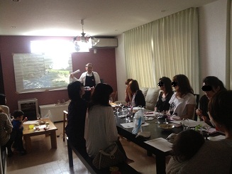 ~~~~~~~~~~~~~~~~~~~~~~~~~~~~~~~~~~~今後のわたしカフェ予定5/21(月) コーラス 5/29(火) 薬膳料理講座 ~春の心身の安定と梅雨に向けての食養生~ 5/31(木) コーラス 6/2(土) 寺子屋造形クラブ それぞれお申込はこちらまで。 その他、パーソナルカウンセリング、イヤーアートセラピー、リンパマッサージなどのご予約受付中!もちろん、子連れOKです☆~~~~~~~~~~~~~~~~~~~~~~~~~~~~夜中の大雨が嘘のように、キラキラまぶしい日差しですねデッキの緑たちも、すくすくという感じで、生命力が伝わってきて、見てるだけでパワーが出てきます。たまに、小蜂がブーンと、ミニバラ付近をうろうろしてる姿さえ愛らしく思えてきちゃったりして・・・ま、これが、ハーブ達を食い漁る子虫だとそう入ってられないのですが(><) 昨日は、とものやさんによる 「The 旅するワイン」 と称して、昨年のフランスワイナリーツアーの様子をご紹介いただきながら、実際に巡られたワイナリーのワインをご紹介いただきました。 正面の壁を使ってプロジェクタ投影して、カーテンを閉め切って、ちょっといつものわたしカフェとは違う雰囲気でしたよ。 まずは、一本目のスパークリングを開けていただいて、それを頂きながらのお話でした。何枚もの写真で登場するブドウ畑や、世界遺産で、参加者達の妄想は膨らみます!地下のワイン貯蔵庫での映像から、試飲の様子、そして、フランスならではの家庭料理や、食卓の様子にまで至りました。かの有名なロマネコンティのブドウ畑の写真からは、ここから生み出される100万の超高級ワインの想像を。。。また、地下の貯蔵庫見学後に、屋外のガーデンに移って生牡蠣とワインを振舞われた際の写真が映し出されたときには、全員で、「食べたーい!!」の完成が「冷えたワインに、レモンをぎゅっと絞った立派な牡蠣は、めちゃめちゃ美味しかったですよ」の先生のコメントでしたが、そりゃ写真見れば十分わかります!!(笑自分たちの目の前のスパークリングを頂きながら、話題は「今度皆でオイスターBarに行こう!」と盛り上がったりの大騒ぎでした 今回のワイン講座を強くリクエストしてたあおくみは、 講座の半分くらいの時点で、「もう私、ここまででもチョ~満足」とため息をついてましたよ。反面、私のほうは、「このメンバーで、このノリでワイナリーツアー行きたい!!」と気持ちが盛り上がって、心は落ち着かず。さすがに、家族を置いて海外にワインを飲みに行くのはまだ無理ですが、子供が手を離れた数年後?10年後くらいには、是非行きたいものです。そのときまで、とものやさん、じっくり企画よろしくお願いします(笑 ワイナリーでの収穫の繁忙期は、アルバイトさんを沢山雇って、手積みで収穫作業を行っているそうなのですが、その際に、アルバイトさんが寝泊りする場所に、とものやさんツアーのご一行の皆さんは泊めていただいたそうです。同じワインでも、作り手さんのご夫婦のお顔を写真で見て、(中には三つ子のお子さんがいらっしゃった作り手さんも!)どんなところで皆さんが作業なさってて、ワインたちがどういう場所で寝かされていたかの映像を見せて頂くことで、より目の前のワインに対する愛着が増しました。皆さんのアイデアから実現した今回の講座でしたが、特にお勉強スタイルではなかったものの、皆さん満足度が高いひと時となりましたね 写真とお話の後は、ランチタイム沢山ありすぎて、一枚の写真には入りきらずに失礼しました・・・ わたしカフェで初出店していただいた、マクロビスィーツのそのまんまさんが今回は参加して頂いてて、卵・白砂糖・乳製品不使用の嬉しいスィーツの差し入れもありました。ご馳走様でした☆ すでに適度にアルコールが入って、テンション高めの私達に囲まれて、講師の店長さんは、私達のパワーに圧倒されまくり(笑もう次回はお願いできないかしら・・・と内心不安だったのですが、夕方、改めてお礼にお店に行くと、圧倒されたもののいい刺激になったということで、次回も快くOK頂きました。 これも参加者からのリクエストですが、暑い初夏の時期に、爽やかにスパークリング特集で考えています また、講座とは別に、先走りしやすい私の中では、旅行熱が夜になっても収まらず、「皆で行きたい」気持ちが暴走気味。海外は無理でも、関東近県あたりに、貸し切りバスでお願いすれば、子連れや家族連れでも、十分に楽しめるのでは!?ということで、早速、わたしカフェ初のツアー企画を、とものやさんにもお願いしてみました。 実現するかどうかは、とものやさんと皆さん次第ではありますが、考えるだけでワクワクまずは、月末のとものやさんの試飲会に足をお運びくださいね~私は、26日に行く予定なので、もしご一緒されたい方はご連絡ください☆ あっという間に、5月も後半。そろそろ6月の企画も具体化させないと・・・ですね。リクエストがあれば、是非ご連絡を!!