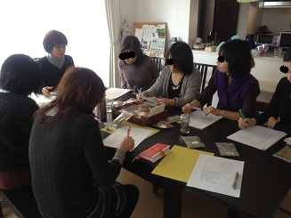 ~~~~~~~~~~~~~~~~~~~~~~~~~~~~~~~~~~~今後のわたしカフェ予定3/23(金) コーラス 4/3(火) 春休み企画!プリザーブドフラワー教室 ~親子で♪ママだけでも♪そして子供だけでも♪ 春休みだからこそできる特別企画~ 4/7(土) 造形クラス第1回 4/16(月) コーラス 4/27(金) コーラス それぞれお申込はこちらまで。~~~~~~~~~~~~~~~~~~~~~~~~~~~~~~~~~~~こんにちは。日差しはあったかいけど、風は冷たい日が続きますね。とはいえ、その冷たい風の中にも、真冬の冷たさではなく、春の匂いを感じてウキウキ さて、今日は、8組のメンバーにて、メディカルハーブ講座の第三回目。一応、今回の基礎コースの最終日となります。 総まとめの今日は、私もいつも以上に神経を尖らして受講。症状にあわせた使用方法を、整理して教えて頂いた後は、ハーブで作る手作りサプリメント。植物性のゼラチンで作られたカプセルに、これからの花粉対策にも最適なハーブ三種類をブレンドした粉末を、それぞれで詰め込みました。(放課後帰ってきた、軽いアレルギー症状がある息子に早速飲ませました(笑)) 今日の資料は、何度も読み直して、いつでもささっと使えるくらいになりたいものです。 今日皆さんにもお話したのですが、毎日朝晩ハーブティーをご家族で飲んでいらっしゃる玲子先生の真似をして、私も、最近毎朝、必ず、主人と娘に、気の向いたハーブをブレンドして飲ませています。先週は、娘の保育園のクラスの3分の2以上がお休みで、インフルが続出状態だったので、その予防も兼ねてだったのですが、今のところ無事、その娘達も感染しない少数派で、明日の卒園式を迎えることができました。また、息子の突き指に、作ったチンキ剤を塗ったら、翌朝には「ママ、痛くなくなったよ!」ということもあり、徐々にですが、お料理以外にもハーブを取り入れた生活ができ始めているのも、体系だてて教えて頂いたこのメディカルハーブコースのお陰です 最後に話題は、次回以降のコースについての相談を皆でしましたが、基本的なことは一通り教えて頂いたので、これまでの内容で、十分に家庭で活用できるとのこと。より専門的なことを学び、インストラクターとか目指すのであれば、今回の初級以降のコースを先生はやって頂けるとのことでしたが、メンバーとも相談し、今後は、定期的に先生にハーバルライフを刺激して頂き、できれば、ハーブを使ったレシピや、実践的な活用方法などを、教えて頂く単発企画を、季節ごとにやっていこうということになりました。 忙しい先生のスケジュールを押さえておこうと、早速次回の打ち合わせ。まだ予定ではありますが、4月最終週のGW入る前に、ハーブ料理のレシピ会&試食会のような企画ができればと思います。 さて、今日の持ち寄りランチ会。今日は、先生もご参加頂けたのですが、珍しく参加者半分以上が、都合が合わずに不参加となり、5人でのランチとなりました。 写真を撮り忘れて大変申し訳ないのですが、先生が作ってくださった2品は絶品でした・グレープフルーツのローズヒップゼリー寄せ たっぷりのローズヒップソースを添えて・ドライトマトとオリーブとジャガイモのケークサレ風どちらも、皆食いつくようにレシピを聞いてました。他にも、ルーマニア料理教室に行ってきたという方が、早速習ったレシピを作ってきてくださり、またパンが重なったので、その場の即席で、ハーブ入りバターを作ってパンに添えたりで、少人数ながら豪華な食事となり、「こんな美味しいお料理で、かつワインに合うものばかりジャン!」とワインもあけてしまいました・・・・茄子のルーマニア風ディップ・ラタトゥユ・ちぢみ・パン ・グレープフルーツピール&金柑ジャム入りパン・サワークリームディップ・ハーブ入り即席バター先生に教えて頂いたローズヒップのデザートは、皆さんにも是非食べて頂きたいので、いつかの持ち寄りで、作れるように頑張ります!! 午後は、特別企画として、yucoさんによるカラーカウンセリング企画でした。こちらは、次のブログで、報告させて頂きます☆
