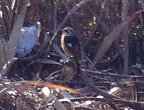 野鳥大好きさんの画像掲示板に送ろうとした画像が送れません。やり方がまずいのか、はたまた、マックの基本ソフトのバージョンが低いのか(他にもできないことがたくさん出てきています)。だから、苦肉の策で、ピンぼけ写真をアップします。ジョウビタキでいいのでしょうか。