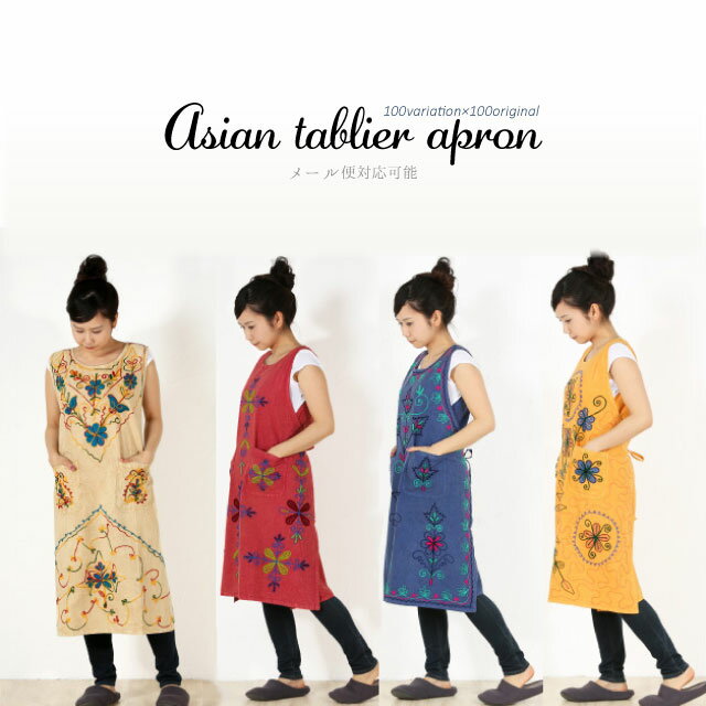 450円は安いですね@@ メール便OK♪ 【メール便対応可】1点ものインド総刺繍タブリエエプロン【楽ギフ_包装選択】/アジアンテイスト/エスニック/ワンピース/刺繍/デザイン/かわいい/おしゃれ