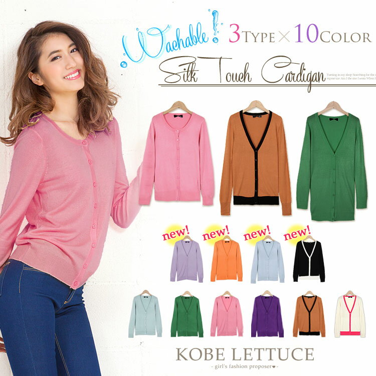 21時から1時間限定で780円送料込♪ ≪超目玉☆チャンスはたったの1時間!送料無料780円!!≫洗える 毎日のFashionを思いっきり楽しむ!選べる3type♪洗えるシルクタッチ&ウォッシャブルプレーンカーディガン[C01053]【入荷済】【メール便】 神戸レタス KOBE LETTUCE