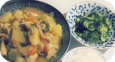 鶏肉とジャガイモの煮物 胡瓜とワカメの酢の物