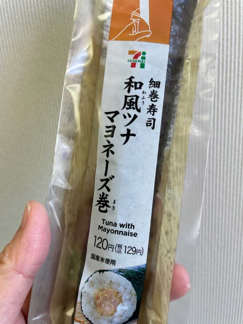 細巻寿司 和風ツナマヨネーズ巻120円(税込129円)セブン-イレブンこの形、絶対食べやすいでしょ❗️さすが裏切りません食べやすい❗️そして、安定のツナマヨの美味しさよ🍙