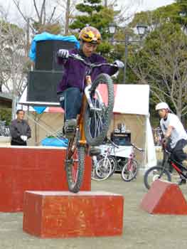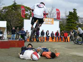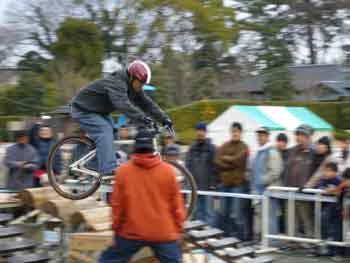 デモの一つに飛び越えがあります。まずは、小人数から始まり段々増やす場合が多い。今回は4人から始まりましたが・・・また、啓太選手がやってくれました。その後、バニーホップ動画はこちらから楽しいです。