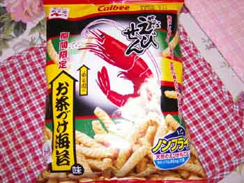 先日、静岡に行きましたが、その帰り道、お土産(お腹がすいてSAに寄った訳ではありません)を購入。静岡といえば!お茶!!で、次に忘れてはいけない、ホウトウ??静岡のは、わさびだったので却下しました。今回はこれだけ!後日、厚木を徘徊していると・・・気になる商品が!(辛いです!)と書いてあり、面白そうと思い購入。食べてみたら、カOビーではないな!食感が好きでなく、3個位食べてkomugiのところに嫁ぎました。