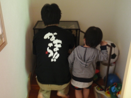 今日はユウパパが帰ったらいつものようにユウマが出迎えてくれました。 今日はだいじょうぶですが、昨日おなかを壊していたユウマさん 帰ったら「だいじょうぶ?」と聞いたらいつものように「だいじょうぶ」と 答えてくれました。 話は変わりますが ユウパパ家では、曜日でユウマを寝かせる担当が変わります。 火・金・日曜日がユウパパで月・水・木・土曜日がユウママです。 都合により入れ替わったりしますが大体そうです。 そして今日は金曜日 いつものようにユウマに「ユウマねんねしよっか」というと 「ねんねしないの」(ユウマ) これはたまにありますが結局寝てくれます。 でも今日は違いました。 「トーサンとねんねしないの」 おっとまさかの指定拒否ですか? それでも抱っこしてベットに連れていくと号泣しながら 「トーサン無いの カーサンとねんね」 ユウパパ撃沈です。 いつもはユウパパと寝る日は良い子でねんねして ユウママと寝る日は暴れて叫んで大変なんです。 「おーいユウマくーん ユウパパが何かしたかーい」 3年間一度もなかったのでびっくりしました。 明日いっぱいユウパパと遊んだらまた一緒に寝てくれるでしょう 兜のリベンジが成功したら今度は次の課題に なかなか退屈させない子です。