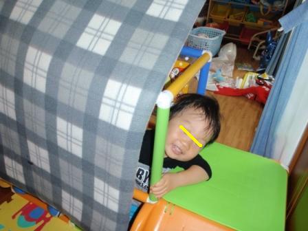 昨日から元気になったユウマ 今日は秘密基地でかくれんぼです。 ユウマの秘密基地は最近ユウママが作りました。 作ったと言ってもジャングルジムに長い座布団をかぶせただけのものです。 でも最近のユウマはそこに隠れて見つけてもらうのが大好き! ほっとくとスネます。 見つけてほしくていっぱいヒントをくれます。 座布団(屋根)をたたいてみたり 少しのぞいてみたり 声を出してみたり そのあと見つけられたときは超ご機嫌です。 次に流行る遊びは何でしょうか? またまた楽しみです。