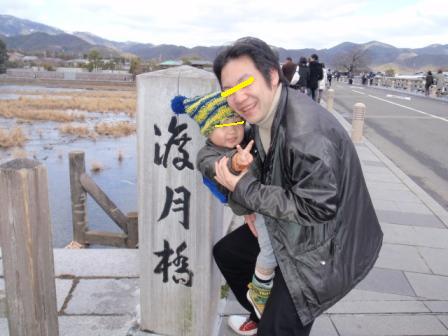 正月以来、ご無沙汰です。ユウパパです 忙しくてなかなか更新できませんでした。 今日は京都市内へ行ってきました。 ユウママのお兄さんがいるので遊びに行くついでに観光です。 まず嵐山の渡月橋へ 京都府内に住んでいて、まだ一度も行ったことがなかったので 新鮮でした。 京都らしい感じ 次は坂本竜馬で話題の寺田屋へ中には小学生以下は入れないそうなので断念 「竜馬伝」ファンがわんさかいました。 さらに近くに日本酒の「黄桜」記念館があったのでついでに行ってみました。ユウパパはだいぶ飲みたかったけど 運転手だったのでガマンです。 最後に帰る前に「伏見桃山城」へ寄ってみました。 あいにく中には入れませんでしたが 城を見るのは好きなので満足です。 いろいろ見て回って疲れたのか 車に乗ったらすぐにユウマは寝ちゃいました。 またいろいろ一緒に見に行きたいな。