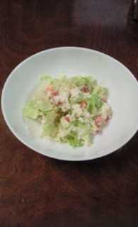 13年前に考えたレシピです。この頃は、ヘルパーが調理をしていた時期で、色々とレシピを考えました。家にある食材で、簡単でお金もかからないようにしたレシピです。参考になれば嬉しいです。携帯の画像が悪いのは当時のものなので、お許しを。豆腐サラダ豆腐 1丁レタス 4/1個トマト 1個①レタスを一口大の大きさにちぎる。②トマトをさいの目切りにする。③①と②をボールに入れて、豆腐を入れて混ぜる。好みのドレッシングで食べる。ポイント豆腐を入れて混ぜることで、食べやすくなり、豆腐にドレッシングの味がのり美味しくなる。