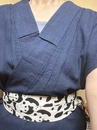 黒格子綿麻しじら浴衣に半衿代わりにした… 2025.07.18