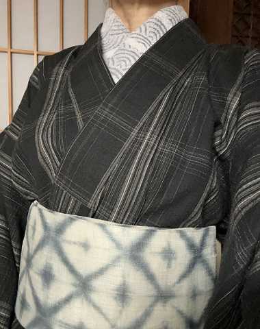 紺に極細阿波しじらを浴衣で 2025.06.09