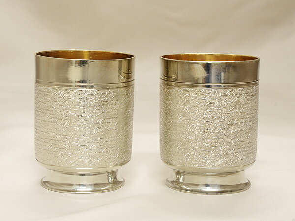 【ネットショップ】http://www.no1boy.com/shop/ 今回は高級感あふれる<純銀製お猪口2点セット>のご紹介です。 ワインを中に注ぐだけでまろやかな味が楽しめる気がして お水,清涼飲料水,酒,ウイスキー等このお猪口でBoyもいただいています。 皆様もお一つお持ちになっては如何でしょうか 長く大切に扱う程深みのある光沢を放つシルバーは、 記念品や大切な方への贈り物としてもおすすめです。 仕様 材質:純銀 サイズ口径:約35mm 高さ:約45mm 総重量:約83.1g 内側は金メッキが施されています。 【中古】純銀製お猪口 2点セット【送料無料】【RCP】【smtb-m】【P20】