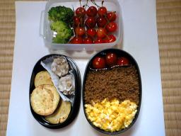 今日で試験が終わり、部活があるのでお弁当復活です。 そぼろ(鶏・卵) シュウマイ 焼き芋 ブロッコリー ミニトマト さくらんぼ(今回は自分で買った)先週の水曜日からお弁当を作っていなかった。たった5日作らなかっただけで、とても久しぶりな気がする。そして明日、明後日は試験休みの為またお弁当作りはお休み。おまけ;さつま揚げ・ごぼう・にんじんを煮た さつま揚げが膨らんで、鍋からあふれそうになった。 おでんの時もこうなるよね~ 本当はこれだけしかないのに(スゴイ)