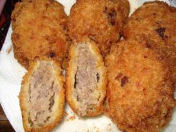 今晩はコロッケにする。かぼちゃを頂いたのでコロッケにすることに。 ← パン粉をつけた。 楕円形が普通(ジャガイモ)のコロッケ 丸いのがカボチャコロッケ多めに作っておいたから、明日のお弁当に入れよう。でも、朝から揚げ物は暑いね~コロッケを作っているといつも思い出すことがある。以前、区の母親学級に参加した時、栄養士さんが言った。 「コロッケなんて手間がかかるんだから、 お店で手間と材料費をかけて、あんなに安く売るなんて考えられない。」確かに¥100くらいで買ってきたほうが楽だと思う。でも、やはり家で作るのは揚げたてが食べられるし、おいしい。(料理上手なわけではないが)