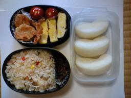 講習&部活の長女 と 塾の夏期講習の次女 今日は2人分のお弁当次女は遠足以外お弁当は持っていかないので、うれしいらい。次女のお弁当箱は去年のラジオ体操のご褒美だ毎朝早起きしてもらったものなので気に入っている。でもチキンを2つ入れるには小さめなので、チキンだけ別にいれたため大荷物になった 長女のお弁当 次女のお弁当 フライドチキン たまごやき かぼちゃ ブロッコリー ミニトマト 黒米 (ごま塩) ←今日は黒米が少なくて色が薄かった 残念。 鰹こんぶ スイカ 最近はラジオ体操も回数が減った。昔は夏休み中あったのに、今はお盆の前くらいまでになった。