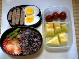 ゆで卵 無理やり入れました。ツルツルしていて収まりが悪かった ハンバーグ ゆで卵 グラタン アスパラ ミニトマト 黒米 メロンメロンはもう少し熟した方が良かったかも・・・ちょっと固めだった。結局購入できなかったジャニーズのチケット。キャンセル 又は 引き換えそびれ は出ないかな~?とまだ望みを捨てきれない娘。諦めて”勉強の夏”はどう?