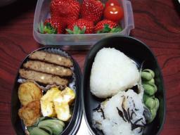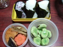 昼休みに部活の集まりがあり10分で、着替えとお弁当を済ませないといけないからということで簡単弁当です今日は早弁かな? ソラマメ せっかく買ったので持たせました。 おにぎりだけでイイと言われたけど、 ソラマメ大好きだから「この時期にソラマメ珍しいですね~」と言うと八百屋さん「今は一年中値段も変わらずにありますよ」だって鹿児島産 1kg \350 お手頃だね~結構大粒でしたあった春の味覚を味わう♪空豆(そらまめ)さやつき!鹿児島指宿産2kg