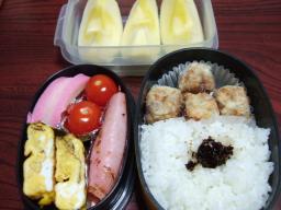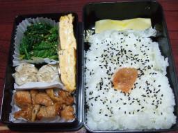 今朝は娘が合唱祭の練習の為早起き長女は起きてきて”まだ暗い!” そう!まだ暗いのよ、そして寒いのよ~次女は昨日ピアノのレッスンに行く時に”4時半なのにこんなに明るい!”と言っていた。 そう!だいぶ日がのびたわねこういう早起きの時に限って主人はいつもより遅く出社 焼き鳥 串がついたままだと入らないので串をぬいた。 普通の鶏焼になった ほうれん草の胡麻和えなので、娘のご飯は梅干だけ。 主人はおかずが少ないのでゴマをプラス。 お弁当に入れる予定の焼き鳥がもう1本あったんだけど、 長女が食べちゃったから 「食べていい?」と聞かれて1本だけ食べるんだと思ってたら 2本も食べてた最近お昼を食べながらこの番組をよく見る。 アナウンサーはきれいだわ~と思いながら。 教えて!料理のアナとツボ(vol.1)(vol. 2)