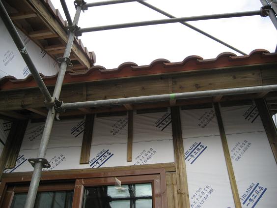 10月30日(火)、お父さんが休みをとってくれたので、2週間以上ぶりで現場に出かけました。あいにく棟梁さんはいらっしゃらず、家の工事もお休みで残念でした。道路から眺めるとサイディンクの下地が施工されていました。近付いて見ると以前ブログ仲間で話題になっていた切妻のところは、下地が先で後からシートが貼られているようです。カタログにある「エアーフローシステム」の図と同じように見えました。