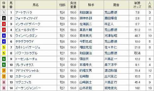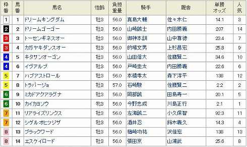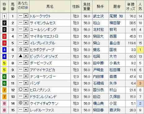 中山11R セントライト記念 GII芝2200m 発走15:453歳オープン (国際) (指定) 馬齢 15頭 皆さんこんにちは 台風の影響で中止になった昨日の代替競馬です。火曜日に中央競馬があるのはへんな感じですね。 バリバリのOP馬が少なく、荒れる要素多分にあるので、馬券的には面白い菊花賞トライアルになりそう。道悪で狙いたい馬が数頭いたが、朝から良馬場ですね。当初の予想を変更しました。 ◎ 14 ケイアイチョウサンラジオN賞は人気薄ながら自慢の末脚を発揮し快勝した。いつも末脚には見所があった馬がようやく嵌ったようだ。スローで届かない場面も考えられるが、ステイゴールド産駒の上昇度も見逃せない。 〇 12 ヒロノプリンス芝の中距離で適正を感じさせる。古馬1000万下相手でも大差なく、ここは通用しても。夏に使われている強みで。 ▲ 7 ビッグバンドジャズ良馬場なら勝負にならないが、消耗戦はもってこいのタイプだろう。格下馬で成績だけでは買う要素ないが、今回ばかりは度外視する。 ☆ 6 ヒラボクディープダービーは出遅れて流れに乗れず大敗した。本来は楽に好位追走できるので、実力さえ発揮できれば力上位。 ヒモ△は 3 ユールシンギング右回りで結果でなかったのが気がかりだが、力量は通用するはずで。 4 マイネルマエストロちぐはぐなレースが続いているが、時計の掛かる馬場で見直し。 11 バンデやや重でもボコボコ馬場、しかも洋芝のタフさが要求される函館で脅威の大差勝ち。道悪なら◎だったのですが。スピード競馬では辛いので良は割引材料。 13 ドラゴンレジェンド決め手不足で良では正直きついか。ステイゴールド産駒なので少し押さえる。 15 レッドルーファスまだ500万下で格下ながらも前走燕特別4着は内容が良かった。大外なので評価下げたが穴で狙いたい。 買い目 本線 3連複 BOX (6.7.12.14) 押さえ 3連複 (12.14)3.4.11.13.15(7.14)3.4.11.13.15(6.14)3.4.11.13.15 ぽちっとよろしくねにほんブログ村にほんブログ村
