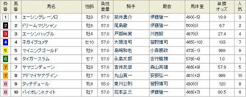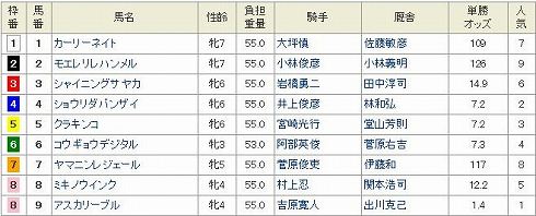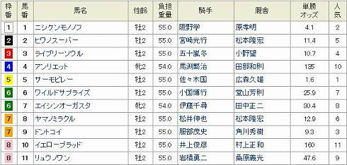 門別11R フローラルカップ H3ダート1700m 発走20:40 皆さんこんばんは セントライト記念は全くの見当違いでかすりもしなかった。今年の3歳戦はどうも分からない気を取り直して門別の重賞でもうひと勝負 ◎ 9 ノットオーソリティー取り消しの影響で間が開いたが、余力十分の2連勝でこの距離は微妙も力で何とか。 〇 7 ニシノエルドラド距離延長に対応できず、ちぐはぐな競馬だったが、すんなりなら通用する力はあるはず。この距離2度目で慣れ見込め。 ▲ 8 ダブルハッピー順応性がありこの距離でも渋とさを見せた。3勝はメンバー唯一で重賞でも。 ☆ 5 ラブミーブルー血統面で距離の心配あるが、一連の内容悪くなく。 △ 1 グランダーシュート牝馬限定なら大差なく。 本線 3連複 (5.7.8.9) 押さえ 3連複 2頭軸 (1.9)5.7.8 ぽちっとよろしくねにほんブログ村