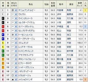 阪神11R ローズS GII 芝1800m 発走15:353歳オープン 混 牝馬 (指定) 馬齢 15頭 おはようございます 台風に伴う雨がまた昼前からぽつぽつ降ってきました。自宅から阪神競馬場は数キロしか離れてないので、同じような天候でしょう。 2時間後はやや重~重になりそう。 コース形状は本番とは全く異なるが秋華賞トライアル。 春のクラシック組と夏に使われてきた組との対戦だが、今年はそれほど目立った上昇馬もなく、やはりクラシック組が休み明けではありますが、阪神1800m外回りは力どおりに決まることが多く上と見ました。 ◎ 1 デニムアンドルビーオークスではとても届かない位置から強烈な末脚で3着に追い込んだ。勝つには致命的な位置取りでした。ここは最内枠で課題はあるが、阪神1800m外回りは脚質的にはぴったりの条件。 〇 17 リラコサージュスイートピーSからオークスは過去好走馬はでないので、8着なら健闘の部類でしょう。ここは条件合いそうで、少し渋れば一発あるかも。 ▲ 18 メイショウマンボ桜花賞大敗後、オークスで一変。血統や成績もつかみ所なく正直、本当に強いのか分からない。阪神2度大敗もフリィーズレビュー快勝もあり、敗因がコースと関係ない。人気もするので怖いがオークス馬ということに敬意を表して。 ☆ 7 トーセンソレイユ小柄なディープインパクトの妹でいかにも非力なので京都向きでしょう。陣営は30~40kg増とのことでパワーアップ図れていれば、やはりこの血は怖い。道悪はマイナス材料だが。 ヒモ△は 3 ウインプリメーラ 古馬準OP級に揉まれ、ひと叩きした上積みありそうで。 5 エバーブロッサム新馬戦以外は常に勝ち負けし、安定した末脚を発揮している。力は劣らないと思うが初の長距離輸送の分今回は関西馬有利にした。 6 セレブリティモデル クイーンSは軽量ながら力差があり大敗した。ここも差はありそうだが、馬名がいいので少し押さえる。 10 レッドオーヴァルコ オークスは2番人気17着と全くいいとこなく大敗した。輸送と距離でしょう。敗因がはっきりしているなら今回は阪神に距離短縮は歓迎で買いだろう。しかしこの距離でも長い恐れがあり様子見で押さえまで。 買い目 本線 3連複 BOX (1.7.17.18) 押さえ 3連複 (1.17)3.5.6.10(1.18)3.5.6.10(17.18)3.5.6.10 ぽちっとよろしくねにほんブログ村にほんブログ村
