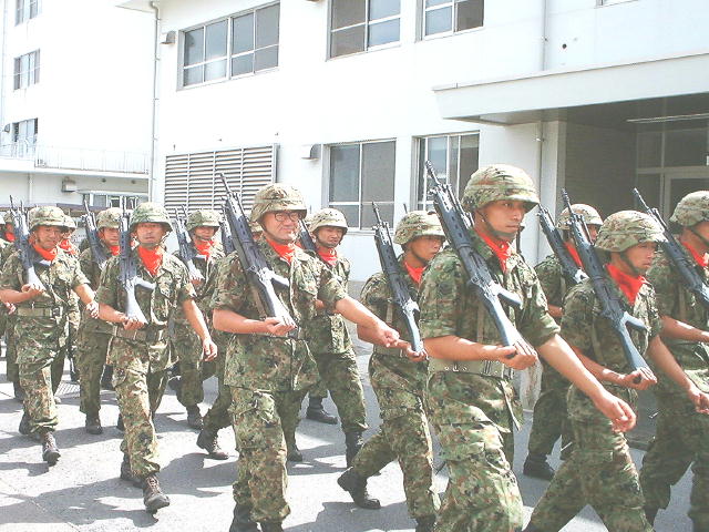 完全武装した兵士ばかりに会う善通寺駐屯地内のイベント。一般市民に公開される訓練の一部ではあるが銃を持ち行進する風景は世界共通の軍隊そのもの。空砲ではあるがその反動は空気の動きとして身体に風圧としてかかる。爆音で空砲なのに戦車がバックするほどの動きを見せた。この善通寺駐屯地の基地公開は、初めての見学となったが狭いグランドでの模擬戦で戦車までの距離わずか100m。旋回する偵察ヘリは20m足らずの距離で砂ボコリを上げていた。気が付くとプラトーンのあのベトナムのワンシーンを思わせる光景は、御エライ政治家の先生がたを戦地に送ることをお勧めする。国費を使い国防の為に日夜訓練を行う自衛隊の方々の腕は真っ黒に日焼けして日本人という感じではなかった。戦闘のないことを祈るが必要不可欠な軍隊それが自衛隊であると確信した。