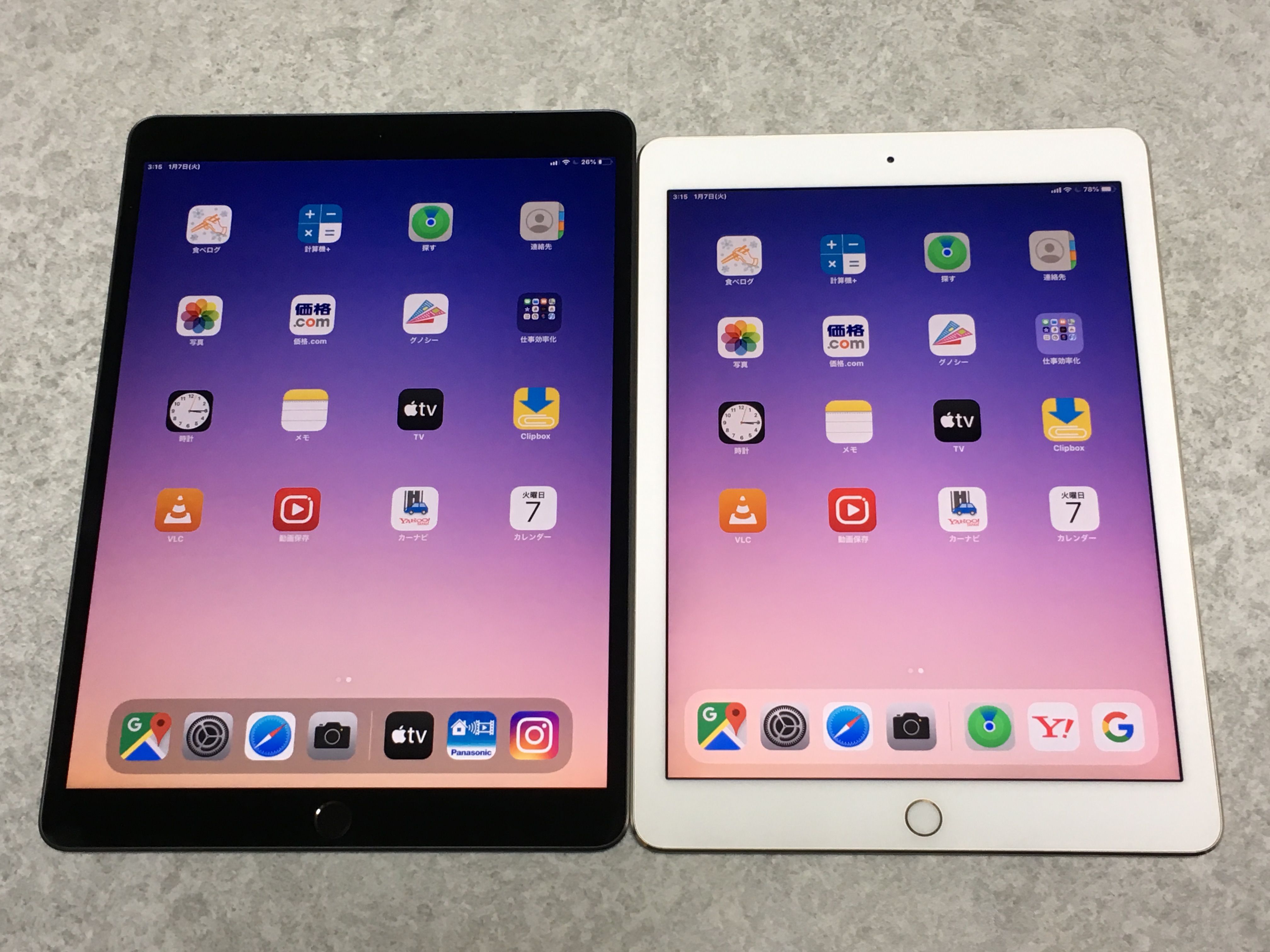 画面を点けるとこんな感じ、Air3の10.5インチはProの9.7インチより数値以上に大きく感じます。