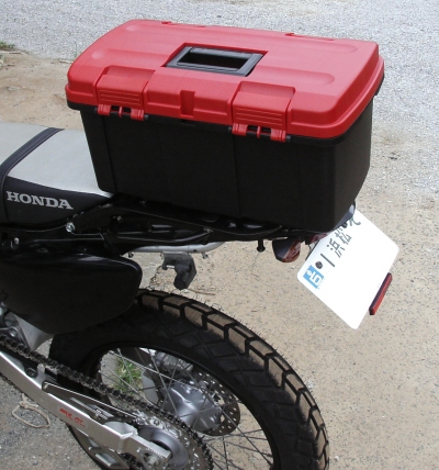 この度、ハコラーデビューしました。リアキャリアーの取っ手を無理なく握れるように幅の狭い物を選んだのですが、ちょっと小さかったかな・・・。固定方法は、フックと、サッシ等に使う補助キー最初は、ボルトとステーを使って、完全固定にしようとしたけど他のハコラーのサイトを見たら、GIVIなど専用ケースに負けないぐらいしっかりとした物もあったのでせめて、着脱が容易な構造にしました。ノブを捻れば簡単に外せます。若干のガタツキがあるのでゴムなどのスペーサーで調節します。